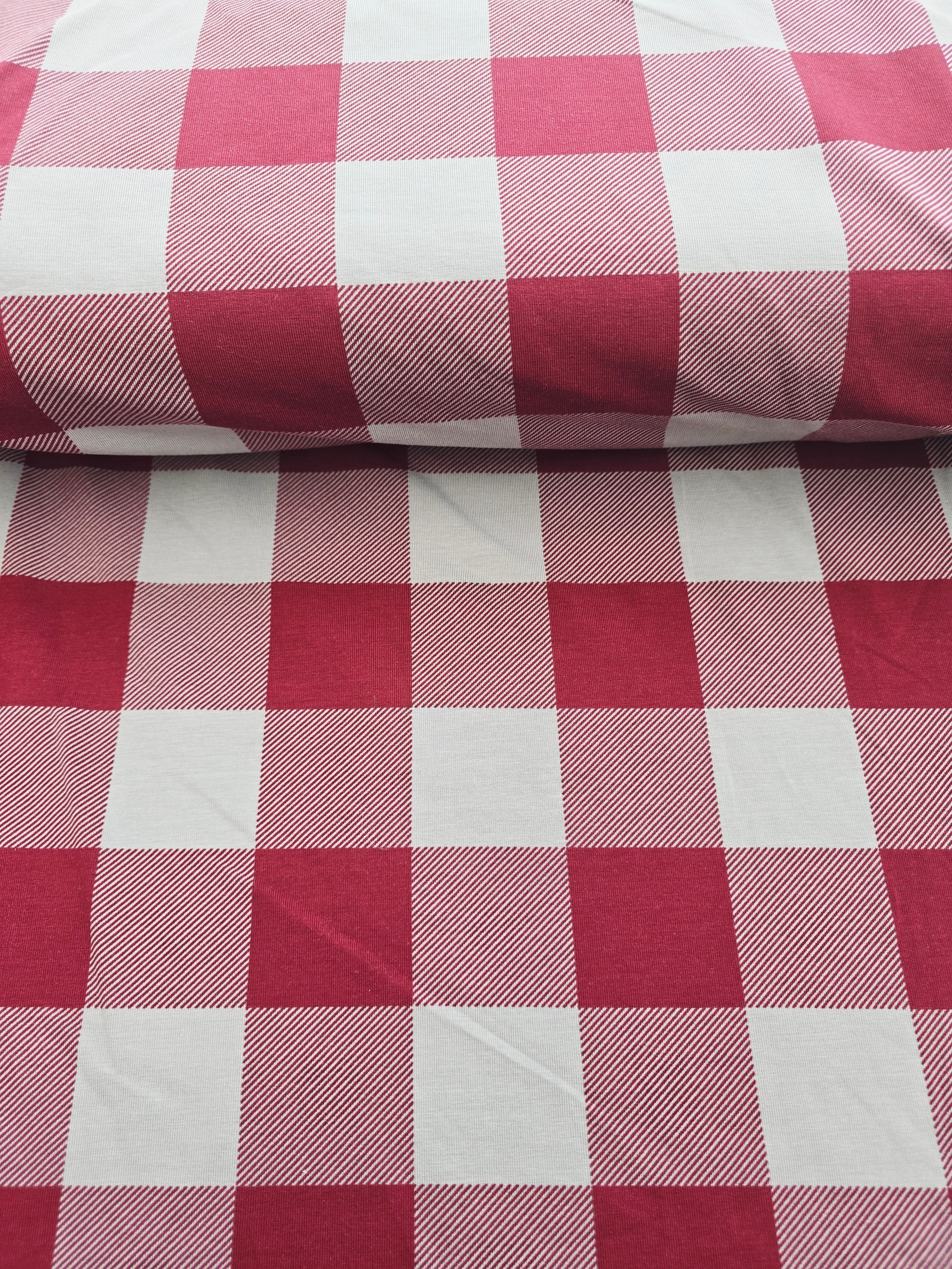 BORDEAUX PLAID / TARTAN COTTON JERSEY PER METRE