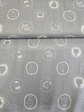 GREY ANIMALS 100% COTTON WOVEN PER METRE